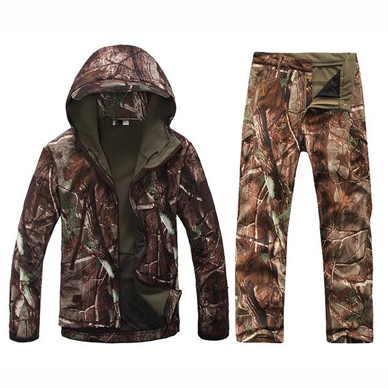 Promo Men Bionic Camouflage Suits Hooded Jacket Pants Winter Fleeces Thermal Breathable Pine Camo Clothes